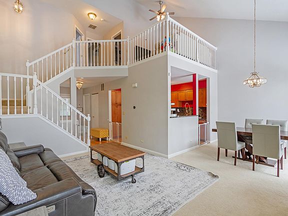 Move right into this beautiful condo in the heart of Carol Stream. Spacious living room with tons of natural light, vaulted ceilings, and an updated fireplace, opens to a formal dining area with slider to the patio. The kitchen features; stainless steel appliances, backsplash, breakfast bar, and modern light fixtures. Convenient first floor laundry too! Upstairs is a loft that could be used as a family room, office, or play room. There is also a master bedroom with walk-in closet and en-suite bath, an additional bedroom with ample closet space, and a hall bath. Relax or grill on the patio overlooking the outdoor space. Located minutes from restaurants, shopping, schools, and Army Trail Road. Great home in a great location!