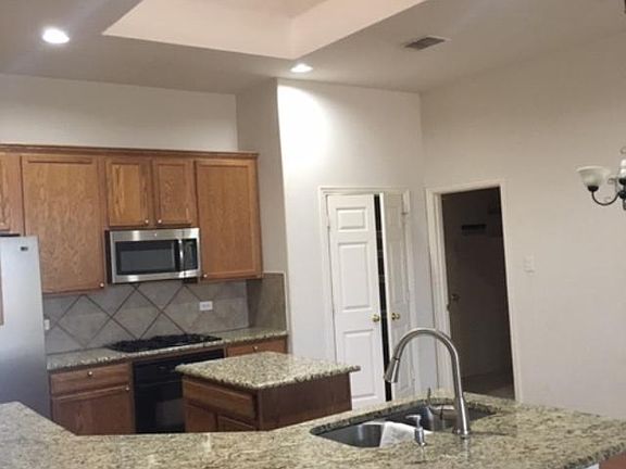 beautiful home with 3 bedrms 2 bath, 3 living rooms and 2 dining areas; upgrades include granite countertop in kitchen and all wood/ laminate floors for easy maintenance; split bedrooms for extra privacy ; 3rd living in rear of house makes a great gameroom or media room; house backs to an open field with no neighbors in back or front; well kept and clean
