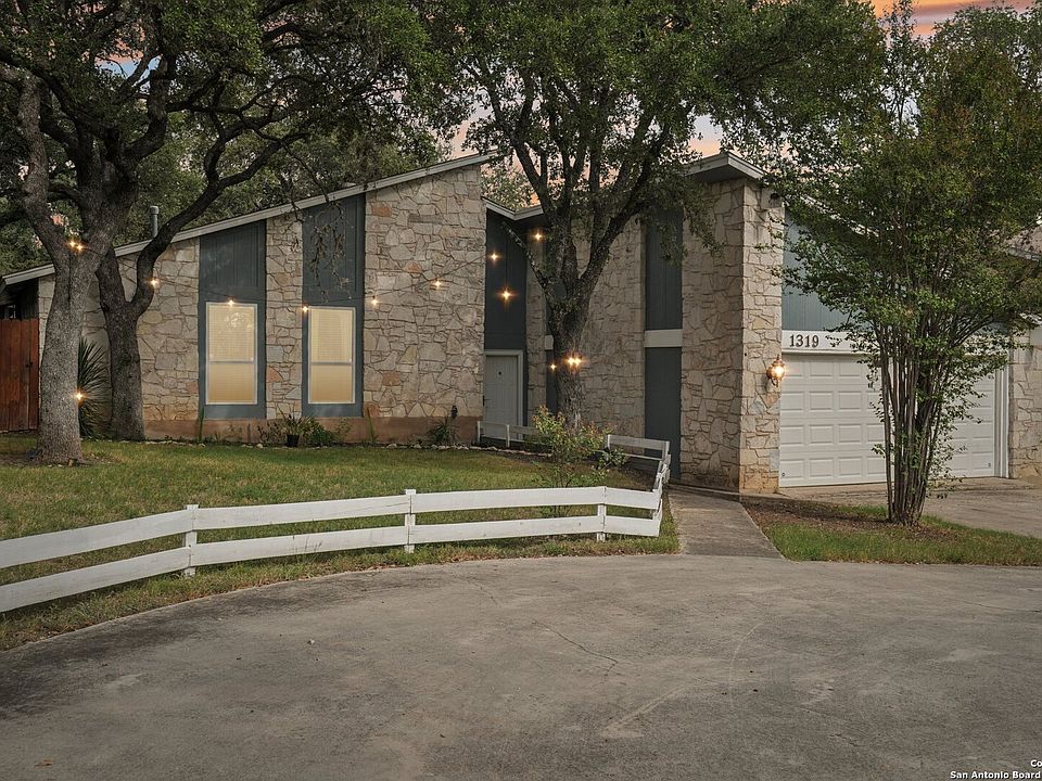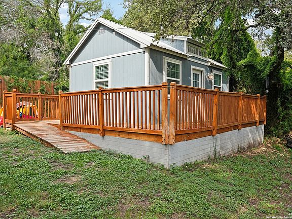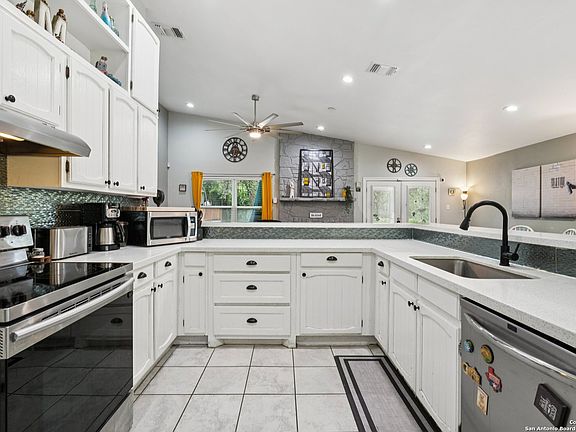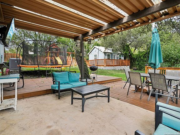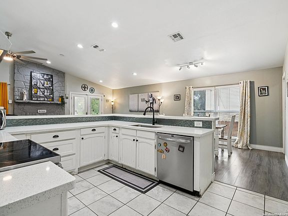 This thoughtfully designed single-story residence offers flexibility, smart upgrades, and the freedom of no HOA restrictions. A curved driveway enhances the curb appeal, while the insulated two-car garage equipped with a mini split AC provides the perfect space for a workshop, game room, or creative studio. In the backyard, a separate casita with its own kitchen and full bathroom makes an ideal setup for rental income, multigenerational living, or guest accommodations. The main home is loaded with energy-efficient features, including solar panels, a water softener, recessed lighting, and new attic insulation to ensure year-round comfort. The kitchen is a true standout, featuring stainless steel appliances, quartz countertops, a farmhouse sink, and a spacious breakfast bar that seats six or more, perfect for gatherings. The open layout flows seamlessly into a welcoming living area centered around a charming stone fireplace. The primary suite includes a beautifully tiled shower with dual shower heads for a spa-like experience. Step outside to a backyard designed for outdoor living, complete with a covered patio, extended deck, privacy fence, and mature trees that provide shade and seclusion. An additional storage building in the back adds extra functionality. With quick access to major roads like 281 and 410, and a short commute to The Pearl, downtown San Antonio, Randolph Air Force Base, Lackland Air Force Base, and Fort Sam Houston, this home offers the perfect blend of comfort, convenience, and lifestyle versatility.