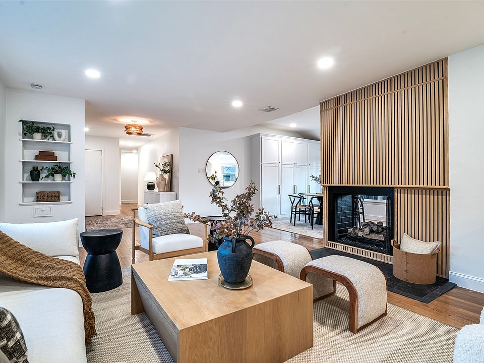 Rare Casa Linda Estates creekside Austin stone cottage-a retreat that feels like you are in the country but with easy city access, strategically priced BELOW fair market value! Hard to find creekside, cul de sac location where the only noises you will hear are the birds chirping in the morning on this peaceful, extremely private lot. A sprawling front yard and charming porch, complete with built-in planters and a unique circular window, create a welcoming first impression. Inside, natural light abounds, thanks to generous windows along the entire back and a fabulous bay window in the front living room and Primary Suite. The living room and kitchen share a modern ventless gas log see-through fireplace, perfect for chilly evenings. The modern, elegant dining room flows seamlessly from the living area into a fully renovated kitchen. This practical and attractive space features quartz countertops, brass sconces, Zellige tile backsplash, custom cabinets with a high-gloss finish, recent stainless steel appliances, and a custom storage pantry. A second living room, with its own entrance, dedicated full bath, and separate location within the home, makes an ideal home office or private guest room. Luxurious lighting and beautiful tile throughout the home artfully blend modern updates with original character. This energy-efficient home offers sophisticated updates and room to grow without sacrificing practicality or original charm.