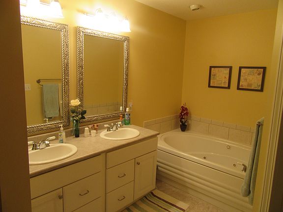 very nice, comfortable, includes beautiful 12 x 18 three season room facing 19 acre woods, beautiful landscaping includes pear trees, hydrangeas, yellow lilies, cozy fireplace for cool days, formal dining w/ tray ceiling, master bedroom with tray ceiling and 2 walk in closets, master bath with shower and jetted tub, large kitchen with lots of cupboards, island and stainless steel appliances Built-in sound speakers in the ceilings for each room 2 I/2 car garage
