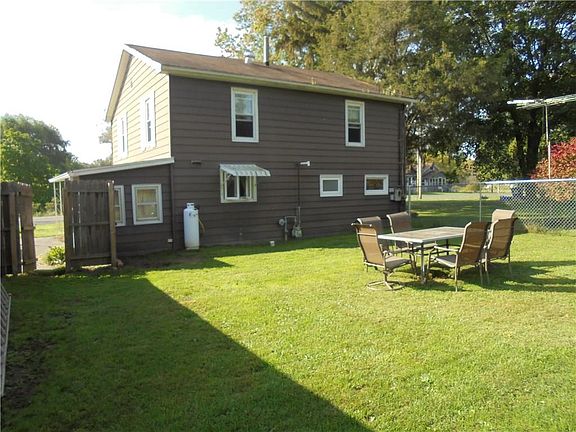 Beautiful 1 acre setting, partially wooded, just outside the village limits with natural gas and town water! This 3 bedroom home has a spacious kitchen with plenty of cupboard space, a large living room, 1st floor laundry and a full remodeled bath. Upstairs there are 3 spacious bedrooms, a large landing, and plenty of closet space. This home has lots of upgrades including: new hot water heater, vinyl replacement windows throughout, 95% efficient furnace 2013, new electric panel, recessed lighting, many rooms have new sheetrock, gas stove, completely remodeled bath with new PEX, tub, toilet, vanity, & barn style door. Must see to appreciate all the work that has been done. There is also a one car garage with electric and a blacktop driveway.