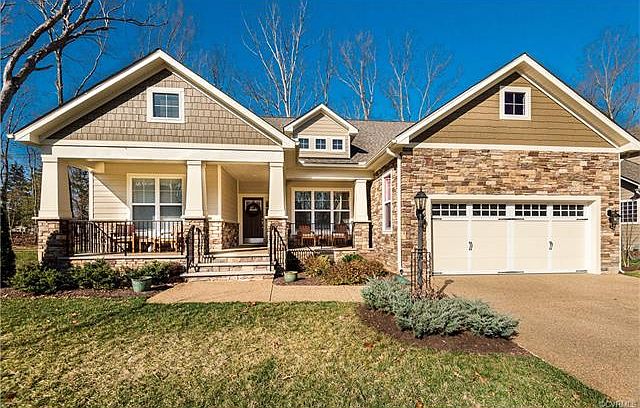 GORGEOUS ONE-LEVEL LIVING home in sought after community is now being offered! You're invited to consider this practically brand new beauty. The open floor plan is perfect for entertaining or easy mobility. Stacked stone & Hardieplank are a low maintenance dream. This supreme lot provides privacy w/a no build natural zone on one side & a stunning horse farm behind you. Inside you will find gorgeous hardwood floors, upgraded mouldings, & a kitchen that will surely please. Front dining room is perfect for all of your special celebrations (or use as a den like the current owners). Kitchen is perfect for any level chef w/a SIX burner top of the line gas cook-top, double wall ovens, built-in microwave, hood, tile back-splash, granite counters, & stainless appliances. Food & butler pantries offer lots of storage. Master suite is an absolute retreat w/a large tile shower that has a bench. 2 guest bedrooms are HUGE w/nice closets. Enjoy the sights & sounds of the outdoors on your screened porch, front porch, or patio. A stunner like this on ONE FLOOR is extremely rare. Hurry, before someone else gets your dream home. Yard maintenance is included. Close to commuter routes & Short Pump.