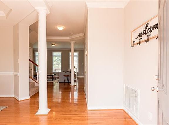 Welcome to this freshly painted, move-in ready, 4 bedroom transitional in Charter Colony. Hardwood floors welcome you as soon as you step into the foyer and formal dining room at the front of the house and extend into the open living room -full of natural light from the wall of windows facing the backyard. The kitchen and breakfast nook have tile floors, ample storage space, and granite countertops. The deck overlooking the spacious back yard is just through the french doors in the eat in area. First floor also includes a half bath, pantry, laundry room, and access to the 2-car garage. On the freshly carpeted second floor, the master bedroom boasts a walk-in closet and ensuite bathroom with both a shower and a separate tub along with a double sink vanity. The second floor has three addition bedrooms with generous closet space and a full bath in the hall. The third floor is fully finished and carpeted. This space could be used as a bonus room, playroom, office, or game room. Charter Colony boasts two neighborhood clubhouses, two pools, courts for tennis/pickle ball/basketball, playgrounds and picnic area as well as the local Midlothian shopping, library, restaurants, and 288.