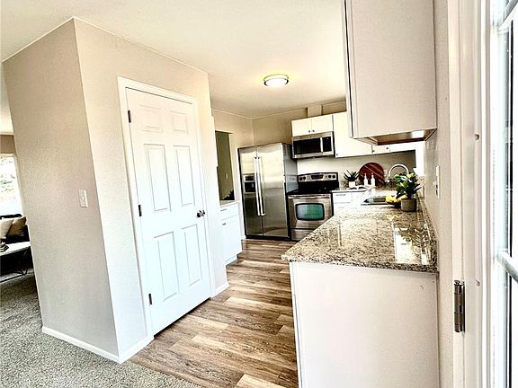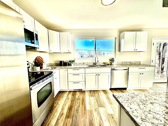 Great opportunity to own a remodeled home at a great price in SW Loveland! Over 1500 square feet of ranch style one level living sitting on a lot that backs to a greenbelt. The interior has been updated to include brand new granite kitchen counters, new kitchen cabinets, new bathroom shower tile surround, new flooring and paint throughout, new windows, new vanities, new lighting fixtures, new french doors leading to backyard, and more! You'll find old school charm here too, with two wood burning fireplaces, a wooden front door with swinging privacy peep window, mountain views from the kitchen window, and two fully mature apple trees in the backyard that produced a bumper crop of apples this fall! Exterior highlights include brand new exterior paint, an attached one car garage, RV or other vehicle parking in stoned side driveway, fully fenced backyard, and a new gate through the back fence that leads into an 8 acre greenbelt expanding to the west and north. Not your typical HOA! They don't care if you want to paint your house pink or park your RV on top of your garage; their sole purpose is to maintain the 8 acres of open space and collect $525 per year from the 82 homes in the HOA to do so. HOA guidelines for use of the open space can be found in the supplements section of this MLS listing. No metro district. While tucked away in a quiet cul-de-sac, the home is just blocks away from the convenience of all the amenities of the King Soopers shopping plaza. This property offers a unique buying opportunity, come take a look today!