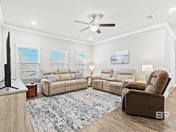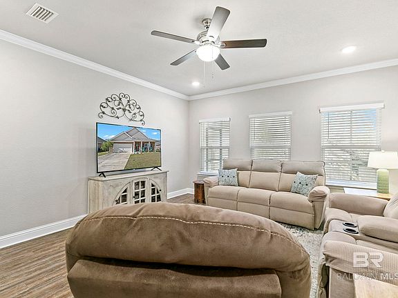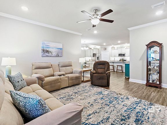 Discover the perfect blend of style, comfort, & convenience at 1319 Kairos Loop, Foley, AL! This stunning Gold Fortified home, built in 2019, boasts 1,958 sqft of thoughtfully designed living space, offering 3 spacious beds, 2 baths, & a versatile bonus room. Nestled within a gated community, this all-brick home combines modern features w/welcoming atmosphere.Step into an open-concept floor plan where the kitchen seamlessly flows into the dining & family rooms, creating the perfect space for entertaining or everyday living. The centerpiece of the kitchen is a massive granite-topped island, ideal for meal prep, casual dining, or gathering w/friends &family. Both the kitchen & bathrooms are adorned w/granite countertops & rich cabinetry, delivering a cohesive & luxurious feel throughout. The generously sized bedrooms ensure plenty of space for relaxation, w/bonus room offering endless possibilities as a home office, playroom, or guest space.Sellers have added automated irrigation system & a large screened-in back porch, perfect for enjoying AL’s beautiful weather without the bugs. The extended concrete pad is ready for your grill, making outdoor entertaining a breeze.Situated in the heart of Foley, this home places you just a bike ride or leisurely walk away from the attractions of OWA. A short drive brings you to the world-famous white sandy beaches &the sparkling waters of the Gulf of Mexico. Surrounded by an array of dining, shopping, & entertainment options, plus being min from S Baldwin Hospital, this location truly has it all.This gated neighborhood offers 2ponds, pedestrian walkways, a sparkling pool, &even a pickleball court, ensuring residents can enjoy an active &fulfilling lifestyle without ever leaving the community. HOA dues that include a full lawn care.With negotiable furnishings, this home offers an incredible opportunity to start your next chapter with ease. Schedule showing today &experience all this remarkable property &community have to offer! Buye