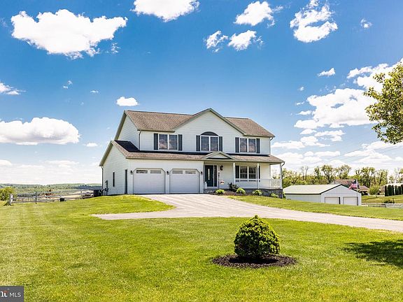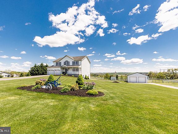 What a Gorgeous Home!!! And WHAT PHENOMINAL views! If you have horses...this may be your home. Features include 2 pastures, high tinsel fencing, run-in shed with feed room and large pole barn (great for storage too!) . Colonial Style Home with covered front porch and spacious rooms thru-out. As you enter the home, you are greeted with hardwood floors, large Dining room (could be the living room too), A huge kitchen with breakfast area, Family room with propane fireplace and it leads to a covered 2 tiered Deck overlooking spectacular views. You don't find these view everyday! Morning Coffee or evening beer or wine will never taste so good.... The upper level has 4 bedrooms and 2 full baths and the rooms are very generous in size. The basement is finished with a rec room or it could be a bedroom, kitchenette and full bath. Yes - there is a walk out too. If you like having an attached 2 car garage....well, its here too. Be ready to fall in love with some of the prettiest views around - no matter where you are in the home....you see for miles :)