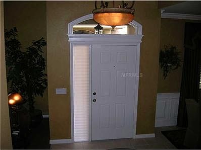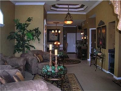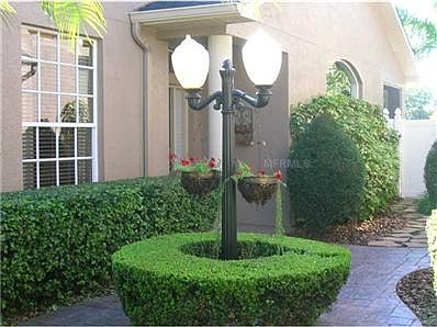 Elegant, Absolutely Model Perfect! As you walk through the courtyard that has pavers & an old fashion lamp post that makes you feel so relaxed that your home! When you enter into the foyer there is a tray ceiling w/crown molding w/faux painting & tile flooring that flows through the dining room into the kitchen. The dining room has custom draperies w/wood blinds, wainscoting, crown molding & designer chandelier w/custom medallion. The kitchen has white cabinets w/raised panel doors w/pullout shelves, cabinets w/glass doors w/lighting, closet pantry, recessed lighting plus lighting over cabinets for that special touch. There is also corian counters & breakfast bar w/pendant lighting. Just off the foyer there is a half bath w/stylish lighting. The living room has custom draperies, crown molding, recessed lighting, custom built gas fireplace w/crown molding & wood mantle and already has HD cable outlet for your flat screen TV plus surround sound inside and out. There a dry bar w/glass shelves and designer ceiling fan w/medallion. The sliders lead to the lanai that you & your guests will enjoy a tranquil view of pond & golf course plus a paved patio to relax in the sun and grill too! The master bedroom is on the first floor w/custom draperies w/wood blinds, crown molding and the master bath has dual sinks w/corian counters, walk in shower & large walk in closet Upstairs there are 2 generous sized bedrooms w/closet organizers, guest bath. Laundry room w/washer, dryer & cabinets. New a/c system plus much more!