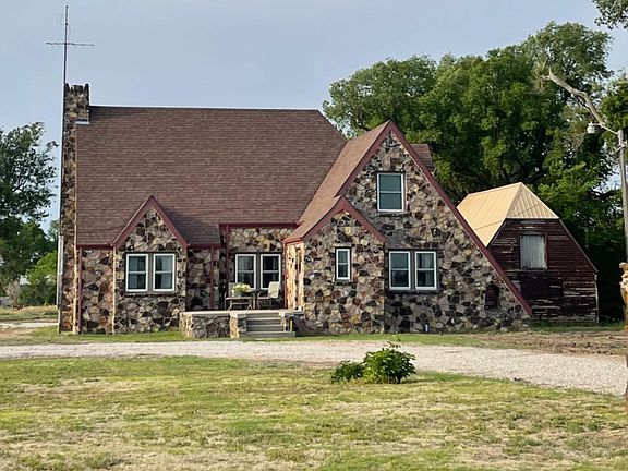 Situated on approx. 7.69 acres +/- located approx. 2 miles West of Larned KS Amazing Creek meanders through the border of the property winding from west to east providing a nice wildlife habitat.This 3 bedroom 1 & 1/2 bath 1724 square ft stone home PLUS partial basement greets you with an abundance of natural light from the updated windows, wonderful open floor plan with open stairway, beautiful dark hardwood floors, updated interior paint and flooring, along with numerous updates and added features. The spacious living room offers new recessed lighting, amazing hardwood floors, open stairway, all open to the dining area as well. The main floor also provides, fantastic bonus living space with wood burning stove that offers numerous possibilities for office area, play space, 2nd living area or main floor bedroom space. The main floor offers updated kitchen with great breakfast space and convenient main floor bath. The roomy mudroom is conveniently located off the rear of the home and provides extra storage space. The beautiful open stairway leads to spacious 2nd floor with wonderful open landing, built in cabinetry, 3 large bedrooms with spacious closets and 1 full bath. The partial basement provides utility and mechanical areas, safe room, and a fabulous amount of storage! Added features include fresh interior paint, new carpeting, central heat and air, updated roof, double detached garage, garden shed, chicken coop, plus newly planted north tree row. This property offers beautiful landscaping and great outdoor living! Open spaces for enjoying gardening, area wildlife and the amazing Kansas Sunrises, Sunsets and Stary night skies! The property is situated on blacktop on a beautiful location of 7.69 acres +/- approx. 2 miles west of Larned KS Call today for your appointment to view this opportunity for fantastic country living within minutes of town! 2021 $ $2501.70