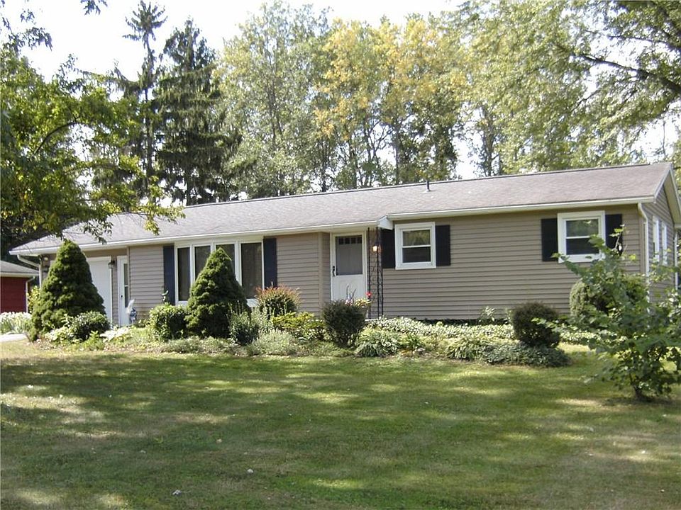 Welcome to this well-maintained three bedroom ranch on a park-like half acre lot in Hilton School District. Backs to wild! Maintenance free exterior, full-house permanent back-up generator, central air conditioning, walk-out basement, deck, and more!