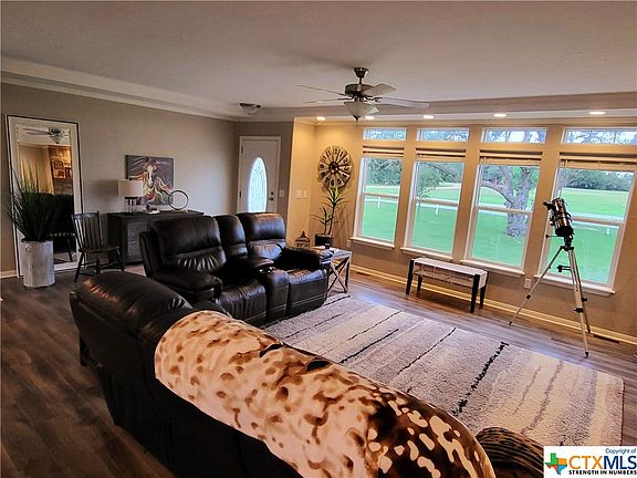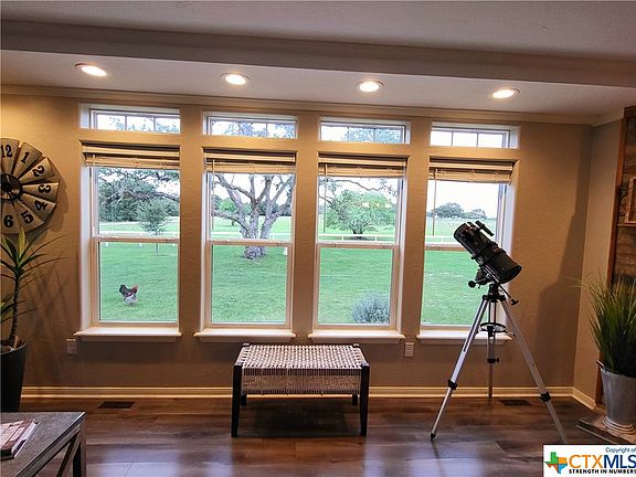Nestled in the heart of Texas, this captivating property offers a serene escape from the hustle and bustle of city life. 11 acres, this slice of paradise is the perfect place to call home. Step inside a well-maintained 2020 manufactured home that exudes comfort and modern convenience. This spacious residence provides an open floor plan with natural light, making it a welcoming and cozy space. For the equestrian enthusiast, a horse barn (45x26) is ready to accommodate your four-legged friends. A generous storage building (15x15) keeps your belongings organized and secure. The workshop (10x15) is a haven for your creative endeavors. Farm-fresh eggs await in your own backyard, thanks to the charming "Chick Inn" (10x12) with an additional feed room (5x12). Keep your tools and machinery sheltered in the equipment shed (12x15), ensuring they're always in top condition. Shelter your vehicles from the elements in the convenient detached carport (22x25). Enjoy leisurely afternoons by the stocked pond, where ducks play on the water, creating a peaceful ambiance. The dock provides the perfect spot to unwind and soak in the breathtaking views. Swings add an extra touch of relaxation. A sturdy ranch fence with 2 solar powered gates surrounds the property, providing security and a classic country aesthetic. A charming white wooden fence adds an inviting touch to the front of the property. Conveniently situated just 20 minutes from the vibrant towns of Cuero & Yoakum, & 30 minutes to Victoria, you're never far from essential amenities, shopping, and dining. Plus, you're within a two-hour drive of San Antonio, Corpus Christi, Houston, and Austin, making this location incredibly accessible for work or play. Don't miss your chance to embrace the beauty and tranquility of country living. This property is a rare gem and a fantastic opportunity for those seeking a peaceful and spacious retreat. Schedule a showing today and make your dream of living in the Texas countryside a reality!