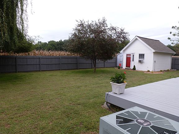This beautiful and charming home is brimming with curb appeal and upgrades. The home is approximately 2,200 square feet with three bedrooms (master on main level) and 2 1/2 baths. There is also a 200 square foot finished room in the backyard that is perfect for a "man cave," play room, or business office. This space has been completely remodeled with a new roof, guttering and floor. The home features extensive hardwood flooring, granite counter tops (and a large island) in the kitchen, and crown molding in the living/sitting room and dining room. The great room (family area) is huge and features a cathedral ceiling that is overlooked by a second-floor balcony. A ventless gas fireplace with a beautiful mantle is also found in the great room. All of the rooms are large. The backyard is wide and completely fenced in. There is a large deck for entertaining, as well as a yard barn and a storage bin. The garage is spacious and easily accommodates two vehicles plus other items. The interior has been updated with new ceiling fans, brushed nickel door handles and faucets, fresh paint in many rooms, and a water-saving toilet in the master bathroom. The home also features new LED lighting throughout, which saves a significant amount on energy costs.
