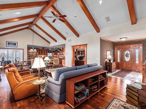 Discover the allure of 1319 N. White Tail Ct., an extraordinary 4-bedroom, 2.5-bathroom patio home tucked away in a tranquil cul-de-sac. Embrace the enchanting water views that grace nearly every window, complemented by the rich hardwood flooring and an impeccable open floor plan, seamlessly connecting living spaces for effortless entertaining. Step into the living room, where a tall, vaulted ceiling adorned with wooden beams and a marble-surround fireplace creates an atmosphere of luxury and comfort. The kitchen, a haven for chefs, boasts granite countertops, an oversized island with a breakfast bar, and top-of-the-line appliances, including a Viking gas stove, KitchenAid double ovens, a Thermador rangehood, a Dacor warming drawer, Subzero built in refrigerator, and a Bosch dishwasher. Additionally, the kitchen features a wet bar, walk-in pantry, pull out shelving, and undercabinet lighting. Retreat to the main level master bedroom with its serene water views, ensuite bathroom with double sinks, jetted tub, and dual walk-in closets with built ins. A laundry room, a half bathroom, and a convenient office space round off this main level. The basement offers relaxation and plenty of recreational room, featuring a spacious family room with a cozy fireplace, a versatile rec room with a kitchen area, and a notable wine cellar. Three generous sized bedrooms and a full bathroom complete this lower level. Experience a true backyard oasis with a multi-level deck and charming patio area inviting you to soak in the beauty of your surroundings. Overlooking the expansive backyard and picturesque views of the water you will want to call this place your forever home. Schedule a showing today!