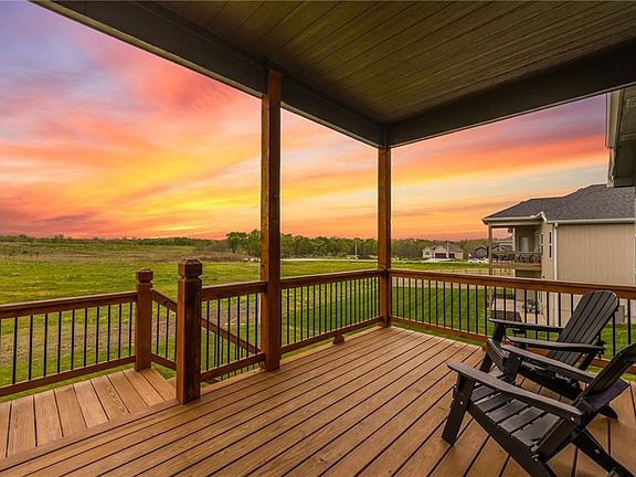 Downstairs? A finished walk-out rec room, two more bedrooms, a full bath, plus storage for days. The garage is even equipped with an EV charger port—ready for your electric vehicle. Kansas City address, Smithville Schools, easy highway access (no noise!), and close to parks, shopping, and all the things. You get space, quiet, and sunsets—without being far from anything.
