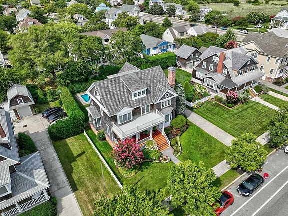 Welcome to 1319 New Jersey Avenue, a masterfully crafted, 3 story, New England inspired home offering 6BR/4.5BA, fully furnished with an in-ground, heated pool. This beautiful home combines historic appeal, nautical charm and detailed craftmanship located just one block to the beautiful beaches of Cape May. The desirable and exceptional layout features a first-floor master suite, a gourmet kitchen with premier appliances, 5 additional bedrooms and a bonus 3rd floor open space, a wood burning or gas burning fireplace, a covered front porch, an open 2nd story sun deck and a rear deck overlooking the private, in-ground, heated pool surrounded by a paver patio and beautiful, meticulous, landscaping. 1319 New Jersey will convey fully furnished, less personal items, and is ready for immediate occupancy. The 1st floor offers a grand entrance with tall ceilings and large windows showcasing the natural light from the morning sun. The European white oak hardwood, engineered, flooring is throughout the entire home and is durable and functional for the coastal lifestyle. To the right is the living room with the gas or wood burning fireplace, that opens to a dining area and recently renovated custom chef's kitchen with designer cabinets, custom tile, quartz countertops a Sub-Zero Refrigerator, Wolf Dual Range, a massive center island and a breakfast nook overlooking the pool, backyard and afternoon sun. To the left of the front door there is another living room that has French doors for added privacy. This living room can also be converted to a bedroom neighboring the 1st floor full bathroom. The expansive master suite is to the rear with an en-suite marble master bathroom with a marble tile shower and soaking tub. There is also a separate entrance to the rear deck overlooking the pool and patio. There is a second entryway off the rear deck to the right of the kitchen that opens to a mudroom with plenty of storage, a powder room, utility closet and full-service laundry room. The 2nd floor offers an additional 4 bedrooms and 2 full bathrooms, a sitting area and 2nd story deck facing east with partial Atlantic Ocean views. The 3rd floor is currently used as a bunk area with 6 single twin beds and plenty of space for play and fun! 1319 New Jersey is unique in many ways, the location and size, an in-ground heated pool, plenty of off-street parking, a detached garage, and like-new construction. In 2020 the Seller completed a renovation that included new HVAC on the 1st floor, a custom kitchen, all new appliances, a new master bathroom (fixtures, soaking tub and marble tile and flooring), new re-plastered pool with surrounding new paver patio, all new flooring throughout (imported engineered hardwood), new spray foam insulation in the crawlspace, all new paint, all new lighting, all new fans, all new window treatments and blinds, new fiberglass decking, refinished front porch and new composite for the rear deck with a Napoleon Grille. This property is truly turn key and tastefully appointed being sold fully-furnished less personal items.