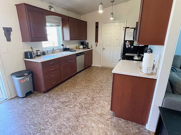 Newly constructed home located off College Rd in Fairbanks with fuel included! Home is ranch style and has 3 bedrooms, 2 baths and a large heated 2 car garage. The 3rd bedroom can be used as a bonus space if desired which features beam mounted hooks for a lounging chair, wooden counter that folds up and a utility sink. Home has an open floor plan and side door off the kitchen which leads out to the deck and large yard. Garage can fit two vehicles , two 4x4's and 2+ snow machines, plus more! Behind the home is the Noyes Slough which has great hiking, skiing or hockey rinks for much of the year. Home is close to shopping, restaurants, schools and Ft. Wainwright main gate. Tenant pays for electric, water/sewer & trash. W/D hookups included. Sorry no pets!