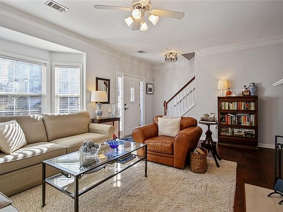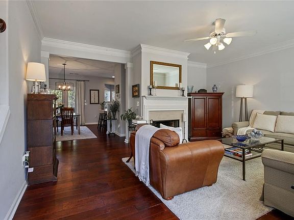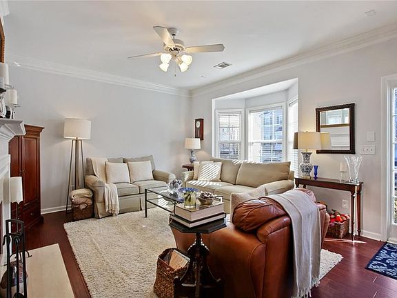 Must see 2Bed, 2Bath, 2Half bath townhome in popular Suwanee Station. Kitchen with stained cabinets and granite counters, fridge included. Breakfast bar. Hardwoods on main floor. Fireplace in living room. 2 carpeted bedrooms upstairs with ample closet space. Laundry located between the 2 rooms. Basement is a wonderful finished room for a mancave, playroom, or study. Garage entry to basement. Move in ready. If your goal is to be near everything, this home is for you!