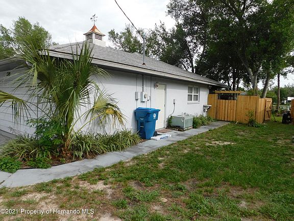 Spring Hill NO HOA, 2/2/2 Split Plan Open concept on corner lot Wood floors, enclosed lanai, windows have been updated reroof in 2005, 1995 HVAC, Back yard has Privacy Fence, with storage shed . Hot tub on screened lanai House needs some TLC lot's of potential Come check out this one.