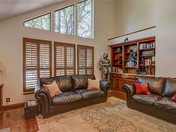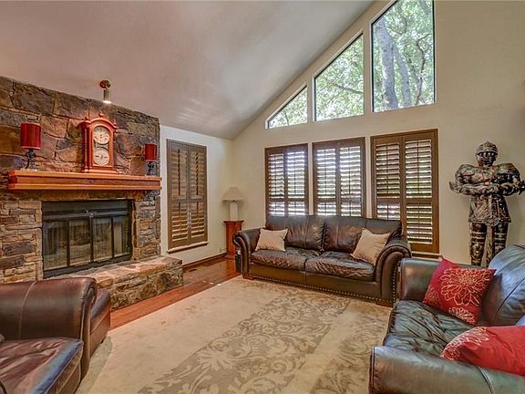 You'll enjoy the versatility and warmth of this unique property. The "New England Keeping Kitchen" with wood beamed ceiling is large enough for your formal furniture, the fireplace offers a warm and cozy setting to entertain guests, with extra seating around the Island Bar. The sunken living room w/wet bar and fireplace is another great space for entertaining w/its cheerful South exposure, large windows, and plantation shutters for extra privacy. The back patio is perfect for entertaining outside, with two sitting areas, resort style stairs leading into the backyard and custom built gardens to accent the patio. This home is ready to move in with new paint, carpet, approx. 2 yr. old AC, hot water heater and 5 yr. old roof! A must see!