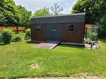 This ranch home is ready for its new owners. Welcome! Nice layout. Large living room. 3rd bedroom is now the dining room. Kitchen is off of the garage. Full basement with full tiled bathroom. Bar is portable and stays with the home. Very efficient gas heating with costs from $20-$100 for everything. Heating, hot water and cooking. Gorgeous new privacy fence. Sit back on the patio and enjoy. New shed. All new electric. New roof , gutters, siding and doors. New windows. Generator hook up. So much more.