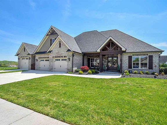 This Stunning 2,800+ Sq Ft home is situated in the prestigious neighborhood of Cool Springs, located in Sevierville TN. This custom home features 4 bedrooms & 3 bathrooms, attached 2 car garage and detached 1 car garage. Built in 2019, this custom home is one of the favorites in the neighborhood. Notice the wood beams, high end wooded shutters and custom wooden gate displayed across the front of the home adding extra character. Notice the craftsman front door with large glass panels letting in an ample amount of natural light. As you venture in through the open foyer you will notice the large open living area featuring a dinning area, living room with gas logs, floor to ceiling stacked stone fire place and large sliding door with access to the open covered back porch. From the living room follow the arch way into the 2 guest bedrooms both sharing a jack and jill bathroom. The kitchen features high end stainless steel appliances, granite counter tops, ample cabinet space and a 6 burner natural gas stove top with custom vent hood. Off of the kitchen you will find a full walk in pantry, laundry room with tile flooring, and access to the 2 car garage. From the kitchen you can follow the steps to the second floor situated above the garage. This room features ample storage, a full bathroom and could be used as a 4th bedroom or a bonus room / movie room etc... The master bedroom suite features hardwood flooring throughout the bedroom, custom sliding barn door entering the bathroom. In the master bathroom you will find high end tile flooring, quartz counter-tops, freestanding bathtub, large custom shower with tile and stone. As you make your way to the back porch you will find a new custom built gas fireplace with lighting and outlets for a TV display. The large back yard has a new fence recently installed with custom brick pillars. Throughout the front and back yards you will find a built in irrigation system. The detached garage was recently built. Zoned A/C unit.
