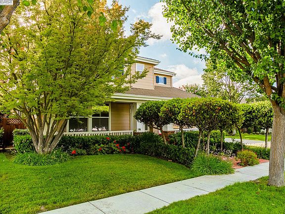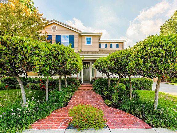 Gorgeous former model in sought after Nolan Farms neighborhood in Pleasanton. This 2 story home features freshly exterior and interior paint, an open floor plan that is perfect for entertaining and new carpets. Home includes 4 spacious bedrooms, 4.5 baths, a gourmet kitchen with eat-in nook, formal dining/family/living rooms, office/den (bedrm4), and an oversized 2-car garage with extra space for storage. The eat-in kitchen includes an island, SS appliances, and beautiful cabinetry blending in perfectly with the gorgeous floors. Luxurious Master Suite with soaking tub, vanity and walk-in closet. Beautiful professionally landscaped backyard with covered patio area and water feature are perfect for entertaining or relaxing. Just minutes to award winning schools, downtown Main St, ACE train, 580/680, restaurants, shopping, & more. Come soon before it's gone!
