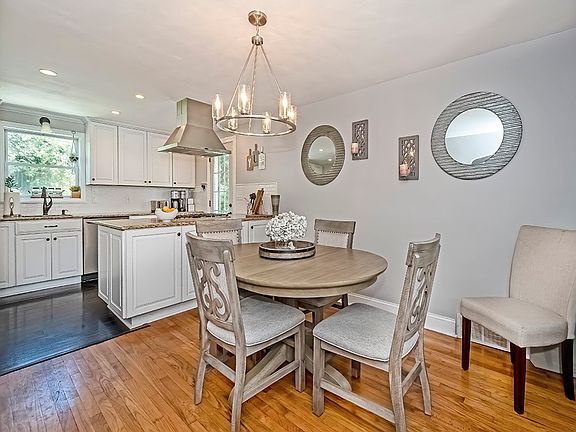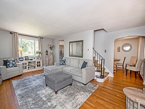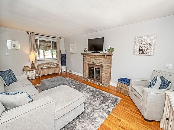 Charming, Bright & Airy. Glistening hardwoods in Living Room and Dining Room. Wood burning stone fireplace in Living Room. Circular flow on Main Level. Open Concept Kitchen/Dining Room. Sun-filled Kitchen with peninsula, abundant crisp white cabinetry, granite counters & stainless appliances plus French door to covered porch. Cool tones, modern fixtures & finishes. Close to Schools, Public Transportation, Shopping & More! New front retaining wall, walkway & front stoop. Large, rear entry TRUE 2 car garage with additional space for parking. Great yard. New shower/tub. Updated electric. Clinker brick exterior. Fabulous Curb Appeal.