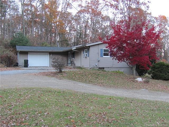 This beautiful home in Tolland is a pleasure the moment you walk into it. Great kitchen to cook and eat in. Large Fireplaced Living room for entertaining or relaxing. The Highlight of this home is the Great Room overlooking the back and side yards. Large enough for any gathering, includes a dining area, cathedral ceilings, lots of natural light from surrounding windows. Wood Stove for heat looks gorgeous. Originally three bedrooms, the master bedroom was enlarged. Would not be hard to convert back to three bedrooms. Finished basement needs attention, currently includes three rooms and a Full Bath. Wood Stove in basement can heat whole house. Generator hook up needs updated. This is a must see home, new owners can move into it and gain equity while updating. Kitchen has been updated and has quality cabinets. Hardwood floors in all main living areas. Tile in bathrooms. Living room has carpet, most likely with wood floors underneath. Motivated seller says bring me a Reasonable offer. Should pass Gov't financing. This is a Good House, it could be a GREAT HOME with a little sweat equity and possibly a 203K Loan. USDA, CHFA, FHA Financing available.