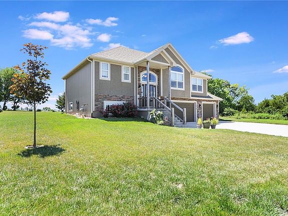 Wonderful spacious split entry is loaded with upgrades and is in great condition ~ only 5 years young! Vaulted ceilings throughout the home offer an open airy feel, and the main level living space has a nice open flow. Kitchen has a pantry, bar seating, granite countertops and gas stove and a dedicated dining space that walks out to a lovely covered deck with ceiling fan. You'll love the primary suite which has a pleasant view, a big walk-in closet, whirlpool tub, double vanity, and plenty of room for a king-sized bedroom set! Main level laundry, granite countertops and tile flooring in all 3 baths and kitchen, water softener. Newly updated LVP flooring on entry, stairs, and in the great room which has a fireplace with gas logs and a great view. The finished lower level has fourth bedroom, third full bath, and a huge family room with wall of built-in cabinets which could make a fantastic home office or fifth bedroom with potential multi-generational living setup. There's a deep three car garage with a 16x6 storage room in the back, deep storage under the stairs, a nice 12x10 shed out back with electricity. Been looking for somewhere to have backyard chickens? There's a nice chicken house set up in the back yard and the chickens can even stay! Fridge stays, red garage cabinets stay, W/D negotiable. Great location, tucked away at the end of a dead end street next to a treeline with no neighbors on two sides.