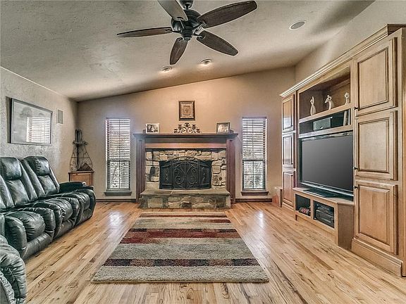 Don't miss this darling home with gorgeous REAL OAK FLOORS throughout! Perfect office space with custom built-ins, that could be used as a second living area or as a study. The living room offers vaulted ceilings and a stone fireplace. TONS of counterspace and STORAGE in this spacious kitchen. Located in Edmond Schools with easy access to Broadway Extension.
