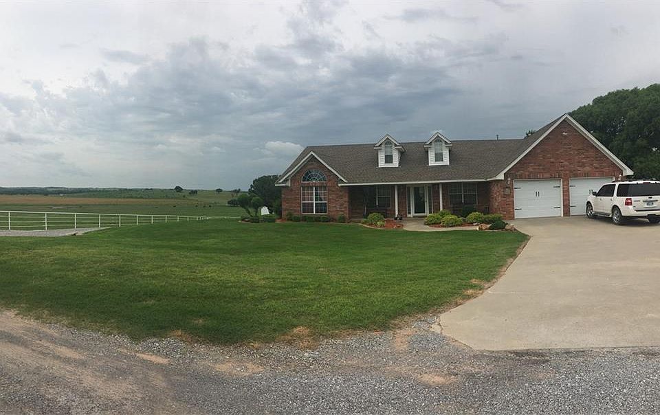 SWEET......home in Rambling Ridge Addition, Fort Cobb. This property is on 3 acres with 2 large metal barns/shop. The home is an open floor plan with nice spacious bedrooms, attached garage, safe room in master closet.