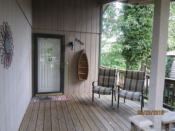 Dedicated Lake Access w/slip rental when available. Updated home with walkout basement. 2 bedrooms on main level and 1 in walkout basement. 2 kitchens, (1 up and 1 down) All appliances convey. FP chimney all new and ready for stove. NEW central Heat/Air lrg deck overlooks lake view. Detached garage has efficiency apartment with Hot water tank and Washer and Dryer hook up. Hobby/storage building with electric. Landscaped yard, road access to property from wood St and road behind property. In grove and close to everything. Commons area has boat ramp and lake access. House is all electric but plumbed for gas. Beautiful water fall.