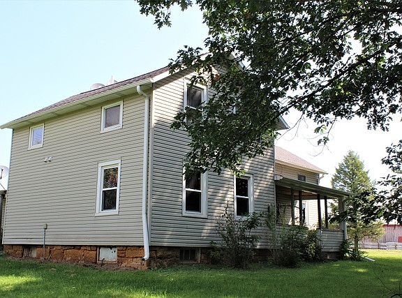 Rural Farmstead Rarity! Offering a total of 17.46 Acres, of which 10.89 are tillable. The almost 2000 square foot home offers new windows, 2 bedrooms and 2 bathrooms on the main level, upstairs offers 4 additional rooms. There is an optional wood boiler or GFA for heat. The outside machine shed is 45' x 102' with 18' x 102' lean too attached. Other buildings include a shop 35' x 35', barn 50' x 100', garage 36' x 34' and 12'' x 12' close to back porch. If you like livestock there are 2 silos with unloaders and cement yards with feed bunks. Apprx 30 walnut trees. This is a very versatile opportunity!