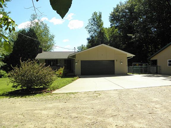 A secluded country setting for this 4 bedroom 2 bath ranch walkout. Beautiful rolling hills surround it. Huge open dining & living rooms with exposed beams plus a beautiful fireplace with pellet stove insert that keeps the utility bills down. Nice sized kitchen with ceramic countertops that has a dine-in area. Open stair case to walk out level which has huge fam/rec room with a custom fireplace/grill, laundry room and 2 additional bedrooms. Sliders walk out to the large fenced rear yard. Additi onal 32x36 pole barn separated with garage area and a second room for dog kennels. Also includes an 24x24 attached garage.