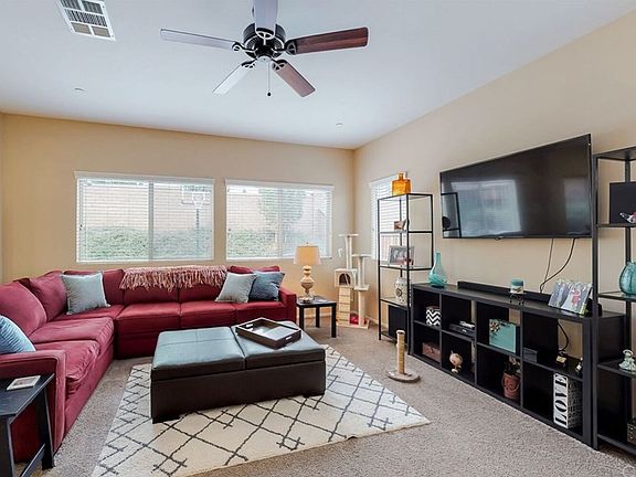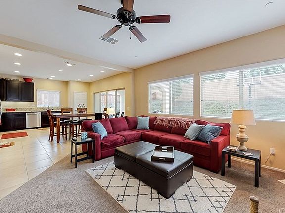 Not a former model homeâbut youâll think it was! Turnkey, immaculate Spanish-Style Tournament Hills II beauty on a tranquil cul-de-sac. An elegant arched entry introduces you to a fully renovated, wide open floor plan illuminated with natural light, highlighted by a grand living room and a modernized, dreamy gourmet kitchen with custom-built island, chic quartz countertops, shaker cabinets, and a unique built in wine bar. A dual-slider exit leads to a large backyard replete with options for entertaining, including a built-in patio cover with ceiling fan/lighting and wired for TV as well as a concrete pad basketball court. A guest bedroom and full bath complete the downstairs. Up the custom stairs you will find two additional large bedrooms and full bath, a large laundry room, and the primary suite, featuring sweeping hill views, a sizeable walk-in closet, and full bath including his-and-her sinks. Recessed lighting, dual-pane windows, and ceiling fans throughout. For further energy efficiency, Tesla solar lease brings typical electric bill under 10 dollars a month and a credit of hundreds at yearâs end! The coveted, family-friendly Tournament Hills II community borders the Morongo Golf Club at Tukwet Canyon, and features parks, sport courts, picnic/BBQ areas, and walking trails as well as a large scenic lake with catch-and-release fishing and waterfalls. Near many miles of biking/hiking and equestrian trails, Inland Scenic Loop. Keyless gated entry and 24-hour security.