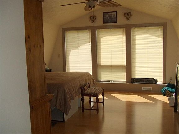 Beautiful piece of paradise! Views and Privacy! Quality construction! Bright and sunny kitchen with modern appliances opens to dining and living room with Santa Fe texture. Butternut hardwood floors, custom Cherry and Elm accent cabinets, huge private master suite with office/den and views out to the reservoir. Walk out basement, lots of landscaping for shade and privacy on the 3.44 acres, 25 fruit trees, garden areas, all under sprinkler system, 3 out buildings. Super energy efficient and very well insulated home, Peach Tree low-E windows, 2 water heaters. Well maintained and updated.
