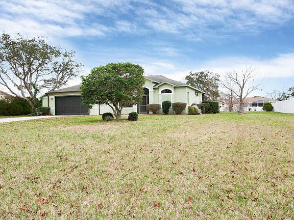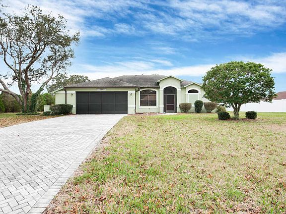 BEAUTIFUL 1/2 ACRE LOT. Move in ready 3/2/2. Swim spa pool with brick pavers and solar heating. Split floor plan. Master bedroom has two walk in closets with dual sinks in the bathroom and a walk in shower. Two good size guest bedrooms. Nice size great room with a beautiful gas fireplace. Formal dining room as well as a formal living room. Large kitchen with a dinette area. Well for the sprinkler system. Also, a paved driveway. This is a repaired sink hole home. All paperwork is available.