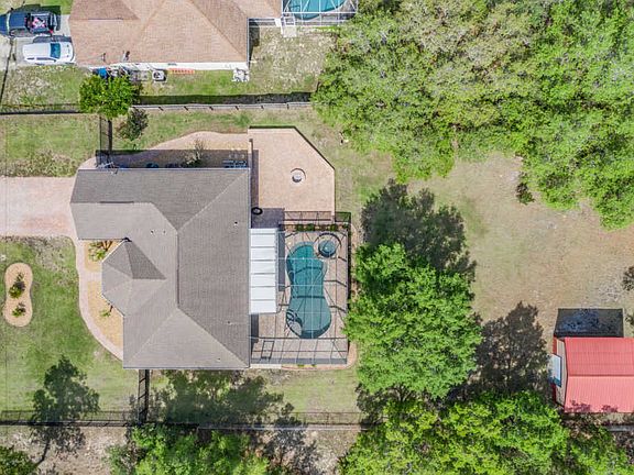 This beautiful Hartland home is nestled in the highly sought after quiet wooded Royal Highlands neighborhood of Weeki Wachee. Entering through the front door you are greeted by the open formal dining and living rooms. The island kitchen features an eat in area, wood cabinetry, and includes all kitchen appliances which opens up to the main living area. Meticulously place pavers surround the home giving it elegance, including the patio. There, you are captured by the quite serenity the back yard offers you. Relax in the pool or hot tub and admire the nature all around. The 20x20 shed is an added bonus to hold those fun outdoor toys and automobiles. Florida living at it's very best! This very clean, and unbelievably well maintained house is move in ready for you. Some added bonuses this home offers you are 6.5' Martin Logan ceiling surround sound speakers and hurricane shutters for extra safety.