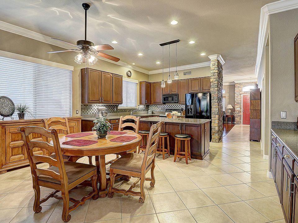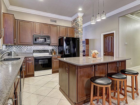 Spacious and Cozy, no detail was left untouched. This home is an entertainers dream. Greeted by custom stone accents and cozy front porch. Step inside and you will find crown molding and stone accent walls throughout the entire home. Spacious kitchen features 42'' cabinets and tons of counter space with island & bar/desk area. Large walk in pantry. Eat in kitchen open concept to expansive family room featuring warm stone accent wall. Master bedroom features double door entry, large oversized walk-in closet and stone accent wall. Master bath boast granite counters with dual sinks, separate tub and shower, 2nd closet as well as a linen closet and private toilet room. Bath 2 recently updated shower/tub with granite counters and dual sinks. Bedroom 4 has jack & jill half bath ...... perfect for home office, home schooling or man cave and can easily accommodate barn doors for added privacy. Laundry room large enough for deep freeze or extra storage. 3 car garage also boast 10ft ceilings for added storage area, also has service door with steel storm door for ventilation and security. Out back you will find extended patio with chilling fans and sun shades, lots of sitting area for entreating or just relaxing. Easy maintenance landscape front and back. No neighbors behind or east side as the property borders common area. A/C units replaced in 2013. SOLAR Savings, enjoy low electric bills All year long! All this located near the heart of Surprise with lots of shopping, restaurants and entertainment.