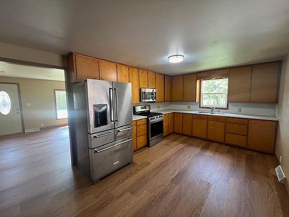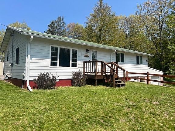 Low maintenance 3BR/1 Ba home on 3.5 acres. Newer vinyl plank flooring thru-out except for 2 BRs. Spacious kitchen. Windows have all been replaced in recent years. Large dining area off kitchen has patio doors leading to brick paver patio in backyard. Lower level features a large laundry area with concrete floor/rec room and huge workshop area. Door opens to front yard and attached 1car garage. New well drilled in 2023. Numerous outbuildings including a 30x54 insulated pole bldg- and others with tall openings that rent out for storage of boats and RV's. Lot backs up to National Forest Lands for your hunting and viewing pleasures. Furnace and AC replaced in 2018. Offers will be reviewed no sooner than 2 pm on Monday 5/20/2024. Don't miss your chance.