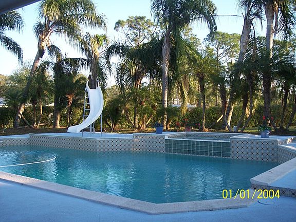 SPACIOUS HOME - LARGE LOT - PRIVACY! This unique and beautiful home is situated on a nicely treed 1.4 acre corner lot and is set back from the road for privacy and peace & quiet. With 2538 sq ft of air conditioned living space all main living areas - Family Rm, Kitchen, Living rm and Dining Rm - are not cramped for space. All the main living areas are 20' ceramic tile. There are 4 bedrooms in a split plan. The 4th is currently used as a pool/game room. The large Master Suite has double vanities, a garden tub and separate walk-in shower. There is a very large covered patio fronting the pool. This home is perfect for the Florida Lifestyle. The newly renovated kitchen features custom cabinets, granite counters and all stainless steel new appliances. Separate large laundry rm with sink and storage. Family room has a working Coral Stone fireplace. The oversize detached 2 car garage has a generous sized bonus room attached with private entrance, glass sliders to the backyard and it's own AC. There is a full concrete driveway with lots of extra parking plus an RV pad with hookups. This home is in move-in condition and at $389,000 is priced to sell! Call Stan at 561-262-3813, or email at stan.brain@yahoo.com