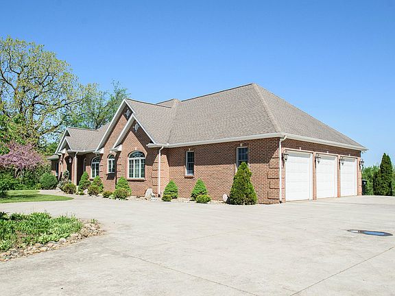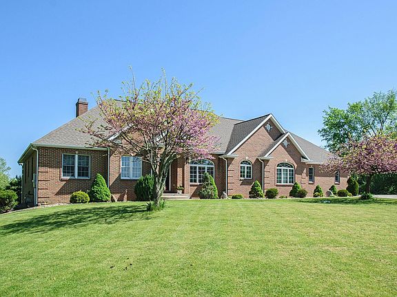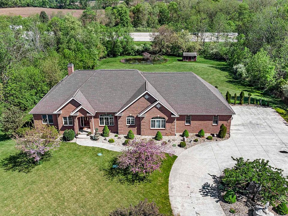 Love to entertain? This is the home for you Located on two acres, this gorgeous custom-built brick home with main level and lower-level living offers oak flooring, natural light, cherry kitchen cabinets and bookcases, oak and marble flooring. The main level bedroom has a beautiful on-suite with a soaking tub and walk-in tile shower. Split format bedrooms, beautiful walkout balcony and a large kitchen with a top-of-the-line appliance package, beautiful granite countertops with plenty of prep space. Need an in-law suite? The lower level has a separate garage entrance, a full kitchen, two bedrooms plus a bonus room and a bar for entertaining. Looking for garage and parking for gatherings? No problem with this home. Enjoy plenty of parking space with the circular drive and the massive three car attached garage. Looking for space to add a barn or a pool? With two acres you have plenty of room to add both and more. Schedule your tour today