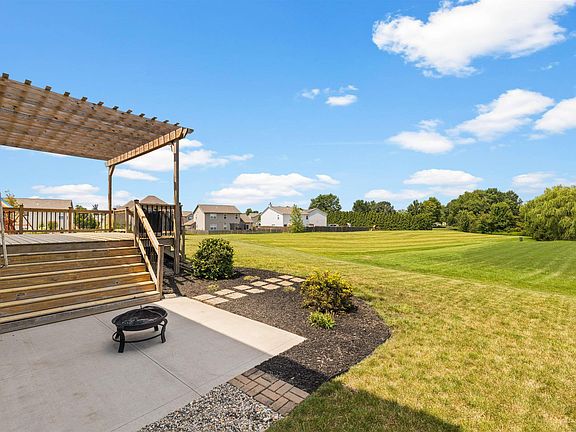 Beautiful 4 BR 2-story home on a finished daylight lower level, located in Ravenswood and NW Allen County Schools! With over 3,200 total fin. SqFt, this property is situated on a cul-de-sac lot that backs up to a huge common area so you can enjoy the view and benefits of having a large yard without all the maintenance! You’ll enjoy morning coffees and weekend cookouts from the large deck w/ pergola, plus added patio area off to the side. Step inside and fall in love with the beautiful custom hardwood floors throughout the main floor area. The Kitchen has been fully updated with painted cabinets with new hardware, tile backsplash, countertops, newer appliances, farmhouse sink, stylish floating shelves, and an over the range custom exhaust hood. In the Laundry Rm there are lockers to keep organization in the high traffic area beside the half bathroom and off the 3-car garage. Several new lighting fixtures have been installed and in the Living Rm there is also a new electric fireplace. Den is located off the foyer with French doors. The Primary Suite is a massive 20x13 and has a large 12x6 walk-in closet, plus en-suite bathroom. In the finished bsmt, you will find two spacious areas 40x15 and 17x11, that are ready to accommodate the endless number of options to fit your needs. Covered front porch and nice freshly mulched landscaping. Don’t miss out on the opportunity to own this immaculate property conveniently located in a high demand area, NW Fort Wayne and close to everything!