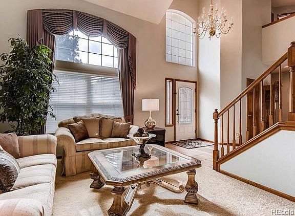 Million dollar views! This beautifully updated executive home featuring spacious and open living areas, is situated on the 8th hole of Thorncreek Golf Course. The unsurpassed, majestic mountain views this home offers will take your breath away! The updated, gourmet kitchen features granite countertops, new dishwasher, large pantry, breakfast bar and eat-in kitchen. Enjoy the large master retreat that includes a walk-in closet complete with a custom closet system, five piece master bath and bay window. The spacious walk-out basement is perfect for entertaining! It includes a wet bar with dishwasher, wine cellar, recreation room, full bathroom, craft area and ample storage. Professional landscaping in the front and back complement this home. This home will not disappoint with easy access to I-25, shopping, golf and restaurants!