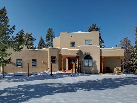 Sante Fe Style stucco with Main Level Living, Bright and Sunny! Fantastic views of Mt Evans from all levels of the house. The Main lvl has a huge master suite w/5 pc bath, spacious great rm w/wood stove in living rm., kitchen has a viking professional range, maple cabs and newer ss appliances. Beautiful slate floors, 10' ceilings on main, solid wood doors, custom wood trim windows throughout. The kitchen is designed and equipped for cooking and entertaining. Large deck off Living area with expansive views. Do not miss the rooftop patio! Great Horse setup w/ electrobraid fenced turnout, lg. metal loafing shed, and 60' square arena. Yard for dogs. Thoroughly refurbished and well maintained. Quiet neighborhood within 10 minutes from several open space parks. Close to 285 on county maintained roads with a flat south facing driveway for easy quick commute.