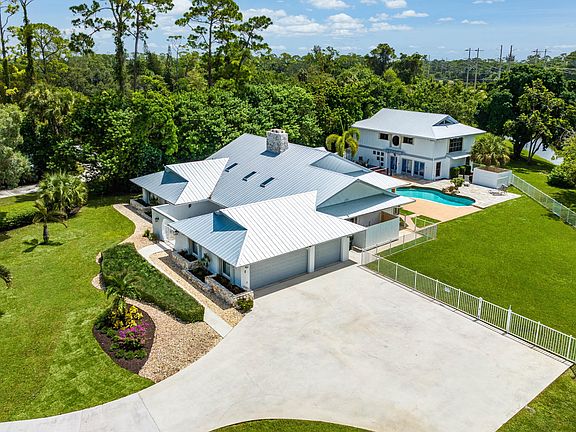 Step into a world of enchantment with this magical 2-home estate, nestled on over an acre of land in Wellington. The estate comprises a 4-bedroom main house and a guest house, with a shared pool deck and fenced green oasis. The main house invites culinary creativity with a chef's kitchen overlooking the pool courtyard, and a master suite that offers a serene retreat with an en-suite bathroom overlooking a private garden. The guest house featuring 1 bedroom & 1 bathroom, versatile loft area, kitchen, and a laundry room is reminiscent of an alpine ski chalet. 2022-installed metal roofs, fresh paint, and meticulously designed landscaping ensure this property exudes elegance and character. No HOA and unparalleled privacy await at this exceptional property.