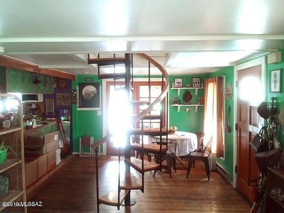 Seller entertaining offers between $199,999 to $239,999~ One of the most photographed homes in Old Bisbee! This 1906 home was completely remodeled in 1990 which includes an addition of a studio with fireplace off of the dining room & included several tiered decks from the back to front of the house & the 2nd floor leading down to the first floor - with room for add'l Living space & Large workshop,storage,dog run in the back of the home. The master bedroom & bathroom are large-walk in closets and doors out to the back decks. many stained glass windows in the home. Wood Floors in most rooms and beehive fireplace in the studio downstairs. The upper & lower balconies have jaw dropping views of Castle Rock, Mule Mountains & St. Patrick's Cathedral. Fantastic remodel in 1990. HUGE Attic Can be.. Made into a guest suite or office! AMAZING VIEWS from every balcony & deck! HUGE/HIGH CEILINGS in ATTIC ! Several public parking spots just below the home as well as across the street at the Courthouse, Church etc. Sellers have never had an issue finding parking even on the busiest weekends. Even parking for your guests! Taxes show that the home was built in 1990 due to the remodel and addition but it is a 1906 home and the buyers should have this changed to get historic value! Spiral stair case can be replaced by BUYER- Not a difficult fix. Local contractors available for this job, so get a quote if it is an issue. Perfect for an in home business! Signage is Awesome and location is fantastic! Walk a few doors down for fresh pastries and Coffee. Shopping and restaurants are a 2 minute walk but the home is out of the hustle bustle of activities that can fill up downtown - It is a PERFECT Old Bisbee location!