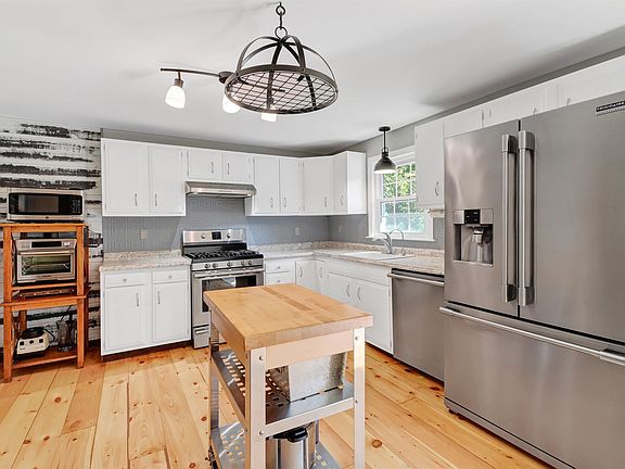 Continuing to show for BACK UP OFFERS. FALL in love with this Exeter property and be home for the holidays! This charming residence offers 1,700 sq ft of beautifully finished living space, combining comfort and versatility for an ideal living environment. Boasting three generously sized bedrooms and 1 1/2 well-appointed bathrooms, this home provides ample room for family and guests. The open-concept kitchen and dining area is designed for both functionality and style, offering pine flooring & a seamless flow. Living room fireplace with custom stonework and a wood slab mantel, creating a warm and elegant focal point for relaxing evenings. The lower level includes a versatile family room with a fireplace insert, recently updated laundry and 1/2 bath & additional walk out unfinished space, great for workshop or gym. Central AC ensures year-round comfort Step outside to discover a large 1.8 acre private yard, enhanced by a stunning granite stone wall and bordered by a natural tree line that offers both privacy & a picturesque backdrop. A standout feature is the 26 x 48 high tunnel greenhouse, perfect for gardening enthusiasts who will appreciate the year-round opportunity to cultivate plants, flowers, or vegetables. Additional outdoor space including deck, fire pit, pool, swing set, poultry coop, and lean-to storage and bus stop shelter with electricity! And a brand NEW stone & pipe septic will be installed just for you! Minutes from local trails, downtown, schools and highways.