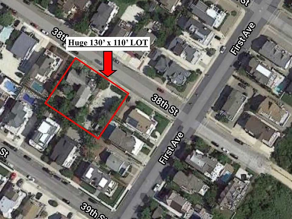 Huge Lot! 130 x 110. Older home with Garage. Located in the R-1C Zone. (50' width and 5000 sq feet needed per lot). Second Lot off of First Avenue. Only two homes on either side of the Beach Block on 38th Street. 38th Street Beach is stable & gorgeous! Excellent Dunes. First Avenue has a high elevation. Just a perfect location! Home is being sold in As-Is Condition.