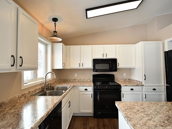 Updated-Fully finished on a Cul-de-sac. This 4-bedroom 2-bathroom home features ceramic tile backsplash, new paint, updated lights, updated kitchen countertops, Lower-level owners' bedroom with walk in closet, barn door and all the updates you're looking for in a move-in ready home. Exterior presents maintenance free deck, maintenance feed siding, fully fenced in large backyard 2 stall garage heated/insulated and new roof on home to be installed Spring of 2023!